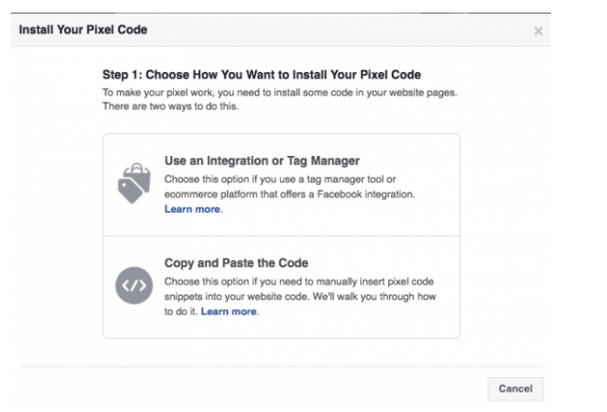 在您选择了受众群体选项后,Facebook会为您提供一个像素跟踪代码,称为您在网站或着陆页上放置的Facebook Pixel,以跟踪访问您网站的访问者: