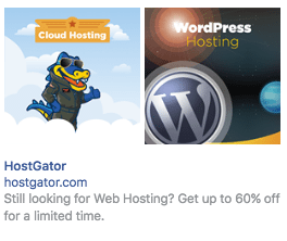HostGator在其Facebook标题中使用紧急程度:
