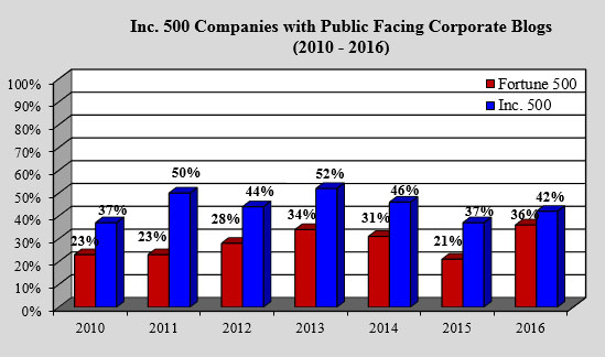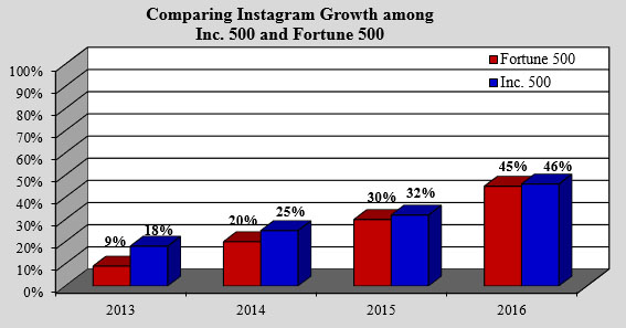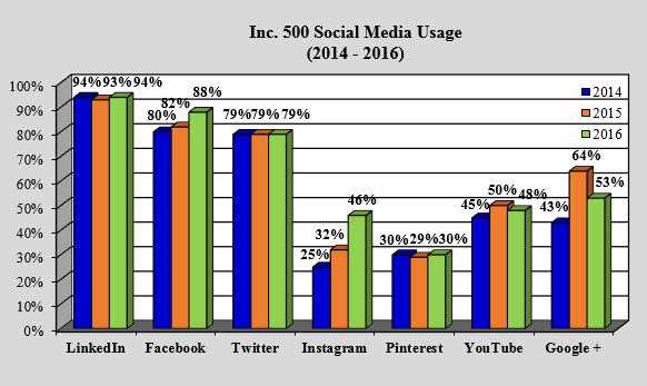 马塞诸塞州大学最近刚刚发布了2016年500家增长最快的企业(Inc. 500)社交媒体的使用情况。调查发现: