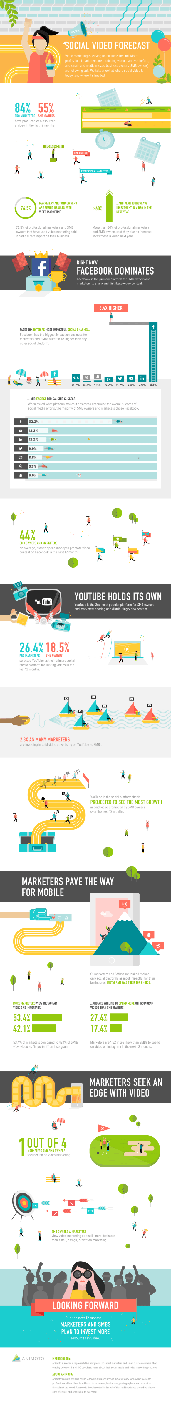 过去12个月,84%的专业营销人员至少制作或外包了一个品牌营销视频。小企业方面,55%去年曾发布过视频广告。使用视频营销的营销人员和中小企业中,76.5%表示视频对其业务有直接影响,超过60%的受访者表示计划增加视频投资。