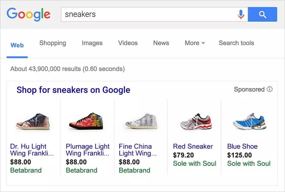 Google Shopping上运动鞋的相关信息